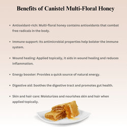Canistel Raw Unprocessed Multi- Floral honey is a delightful blend of nectars collected from various blossoms, creating a harmonious and rich flavor profile. Sourced directly from the hive, this honey captures the essence of diverse flowers, resulting in a tantalizing taste that combines floral notes with subtle hints of different botanicals. Unprocessed and raw, this honey retains all its natural goodness, packed with enzymes, antioxidants, and nutrients. Its golden hue and smooth texture make it a perfect complement to a variety of foods or a delicious sweetener for beverages. Indulge in this pure and unadulterated honey, straight from nature’s bounty.